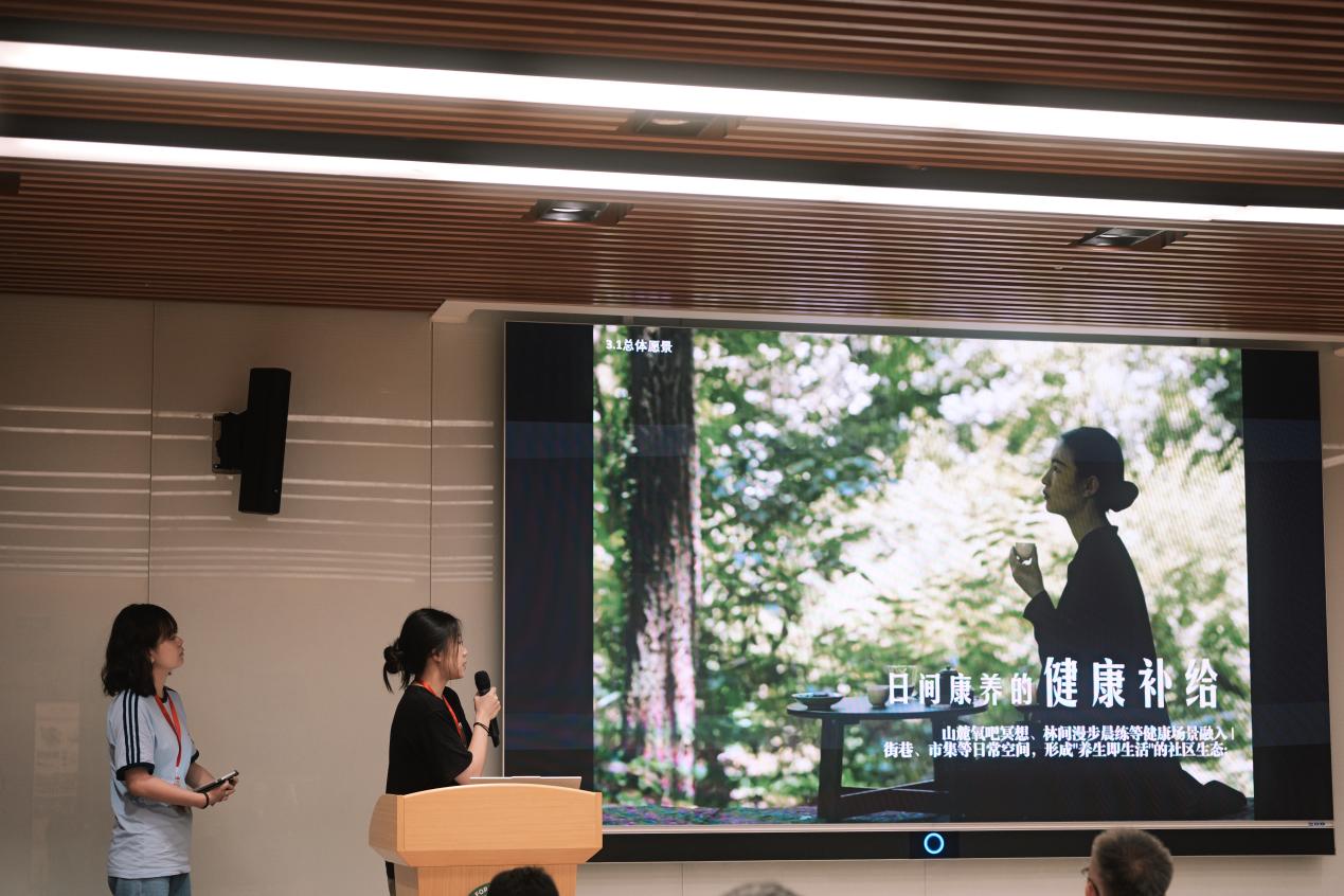 开幕式后,各校师生代表分为四组,分别在组长胡一可教授、潘剑彬副教授、许大为教授、刘骏副教授的带领下,开展设计成果终期答辩汇报。答辩专家组由各校指导老师、苏交科集团、汤山文旅集团、南京市园林院、汤山旅游区管委会、江苏省规划设计集团的专家组成。汇报结束后,师生们参观了毕业设计成果展,交流设计心得,分享设计理念,与设计成果合影留念。